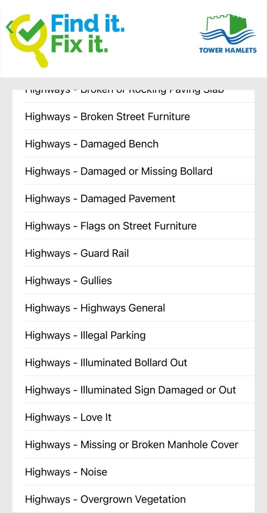 Report via the Tower Hamlets Council online reporting services always results in receiving an email acknowledgement and reference number.