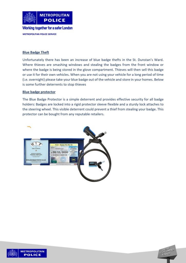 For theft prevention of blue badges, the Blue Badge protector has proven useful.