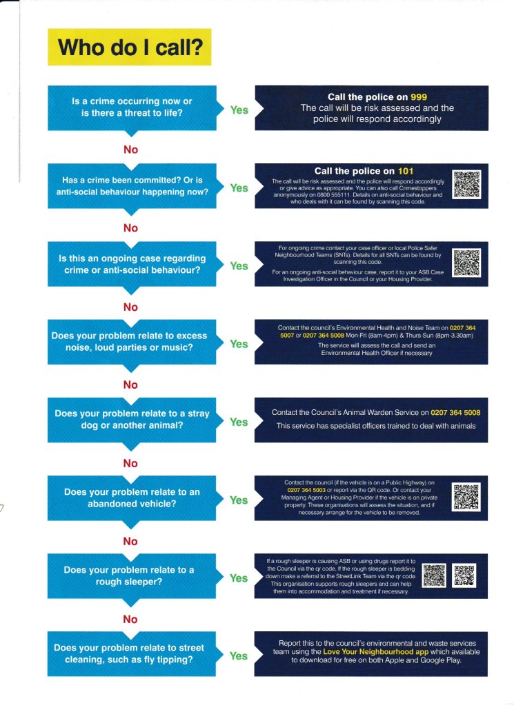 There is now a new ASB hotline but it’s for Council tenants only. Council tenants can report live incidents by calling 020 7364 2332.