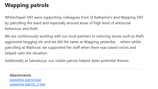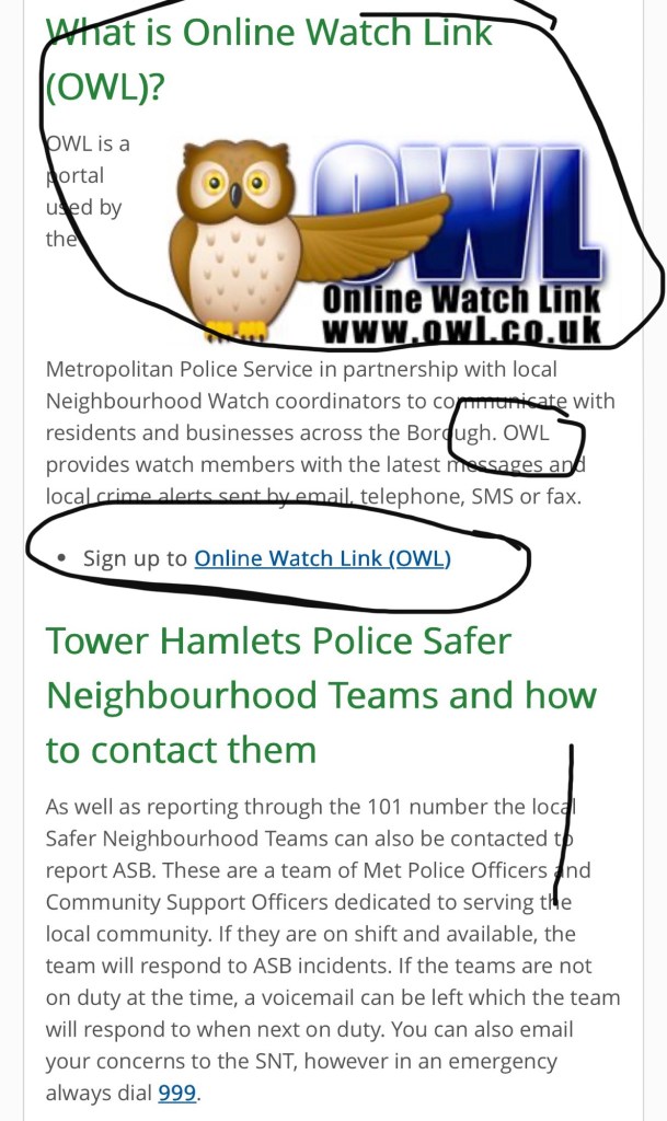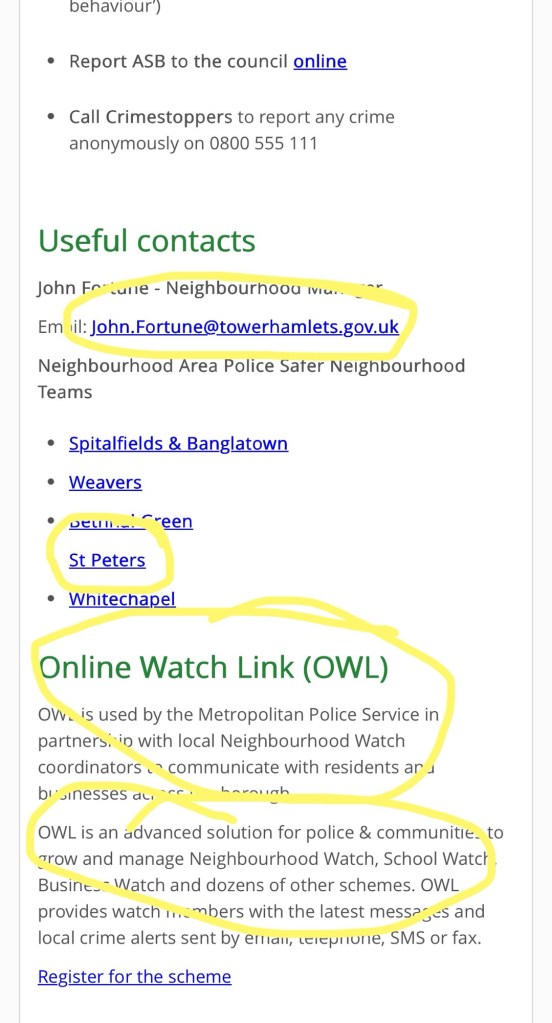 Sadly Tower Hamlets Council web pages on Community Safety are also badly out of date and confusing people who visit them.