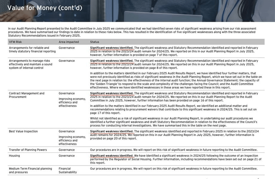 On 2/1/26 former Councillor Andrew Wood has published a detailed article on his Facebook group detailing the finance problems of the Council supplied documents by auditors.