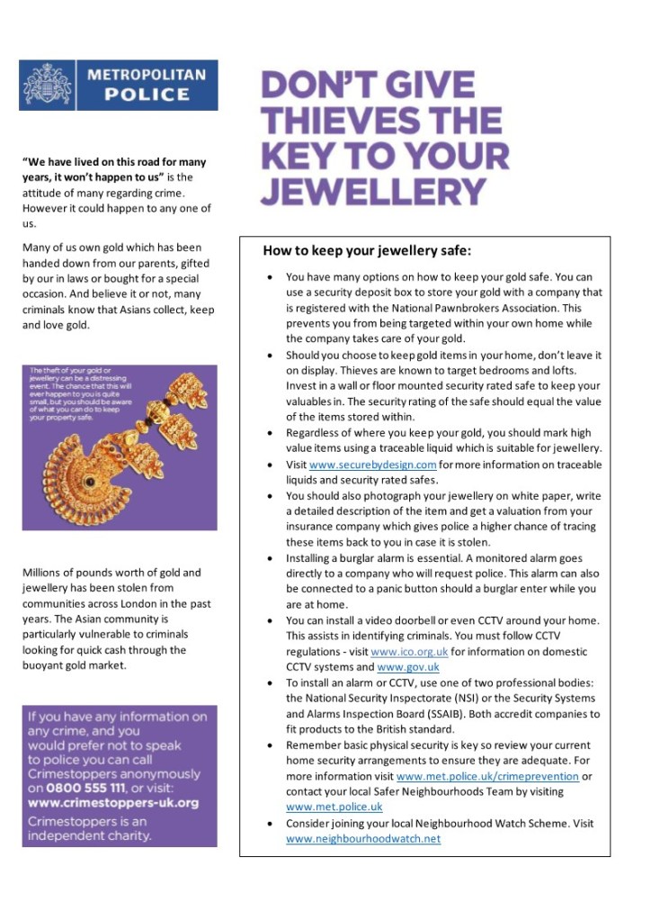 - Help police identify stolen jewellery