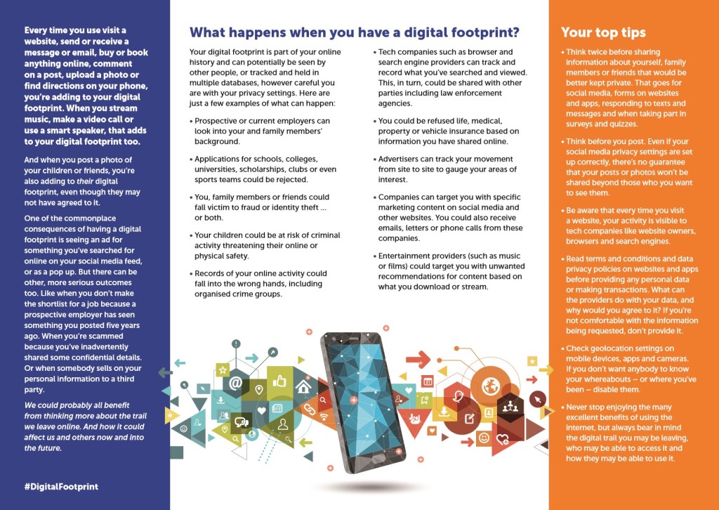 This month the Get Safe Online campaign considers what might happen as a result of your digital footprint, and provides tips and advice on what you can do to protect your digital trail. Please visit the following link for further information: