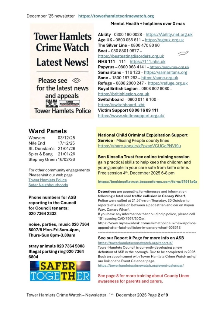For the SNT team newsletters please visit the Safer Neighbourhoods Page.
