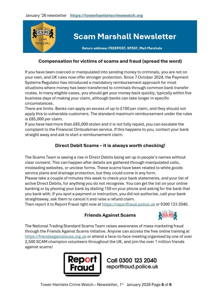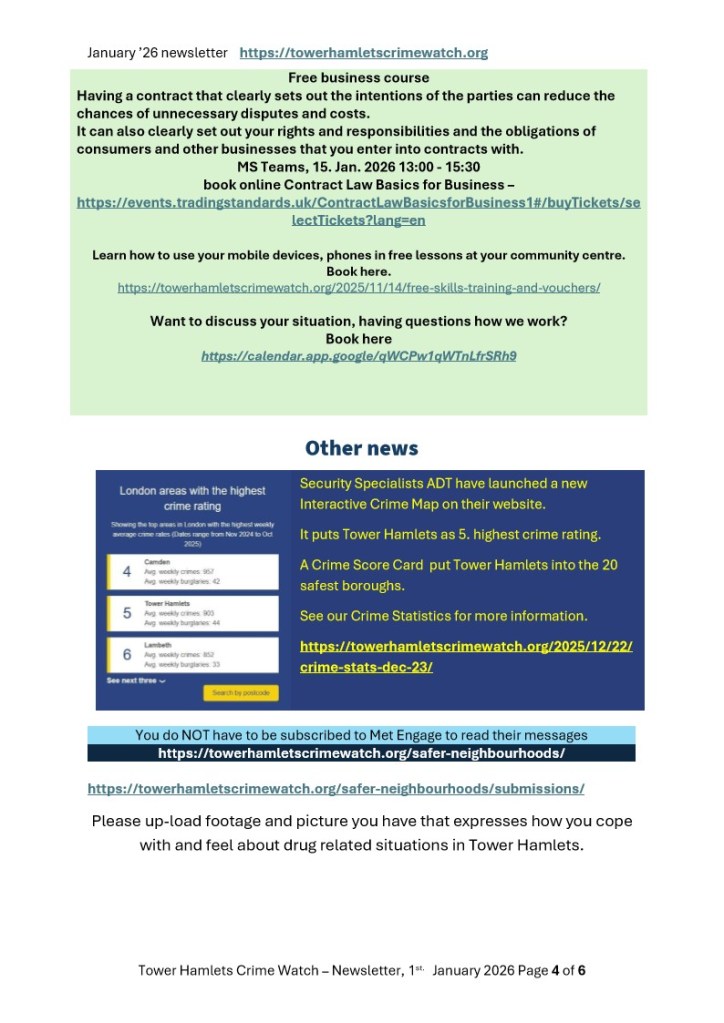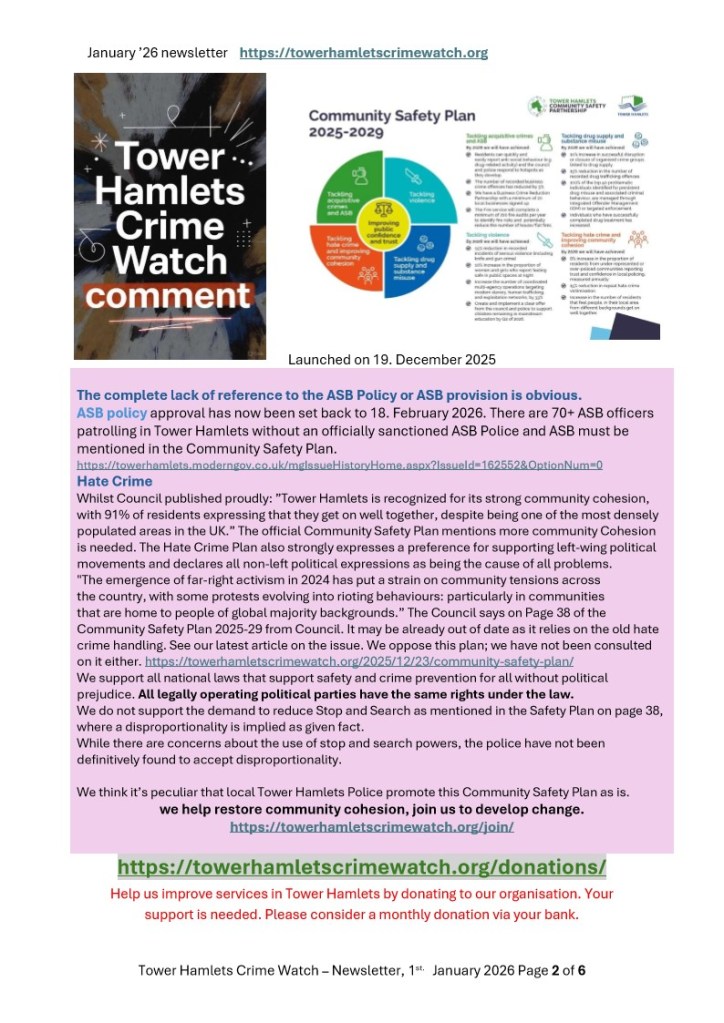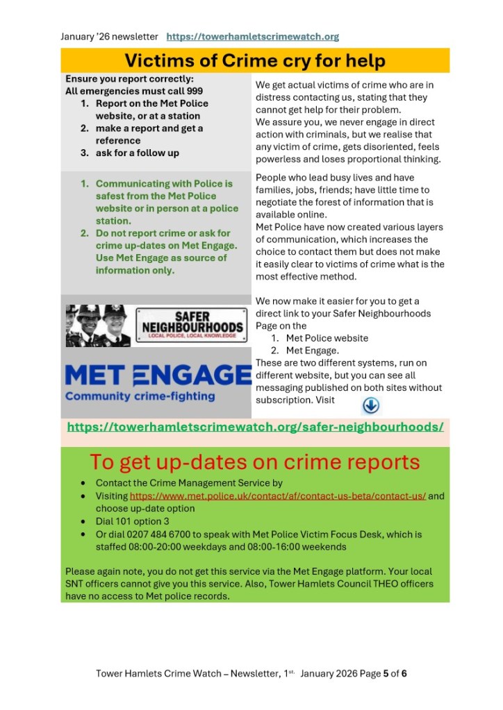 Tower Hamlets Crime Watch January 2026 newsletter