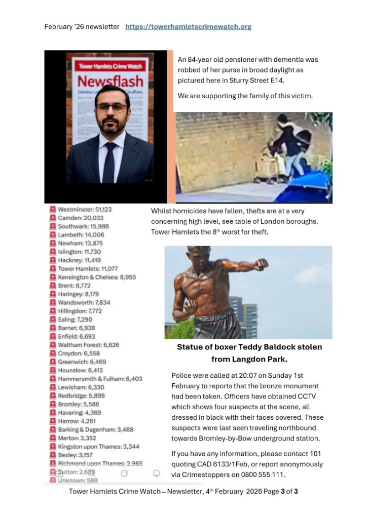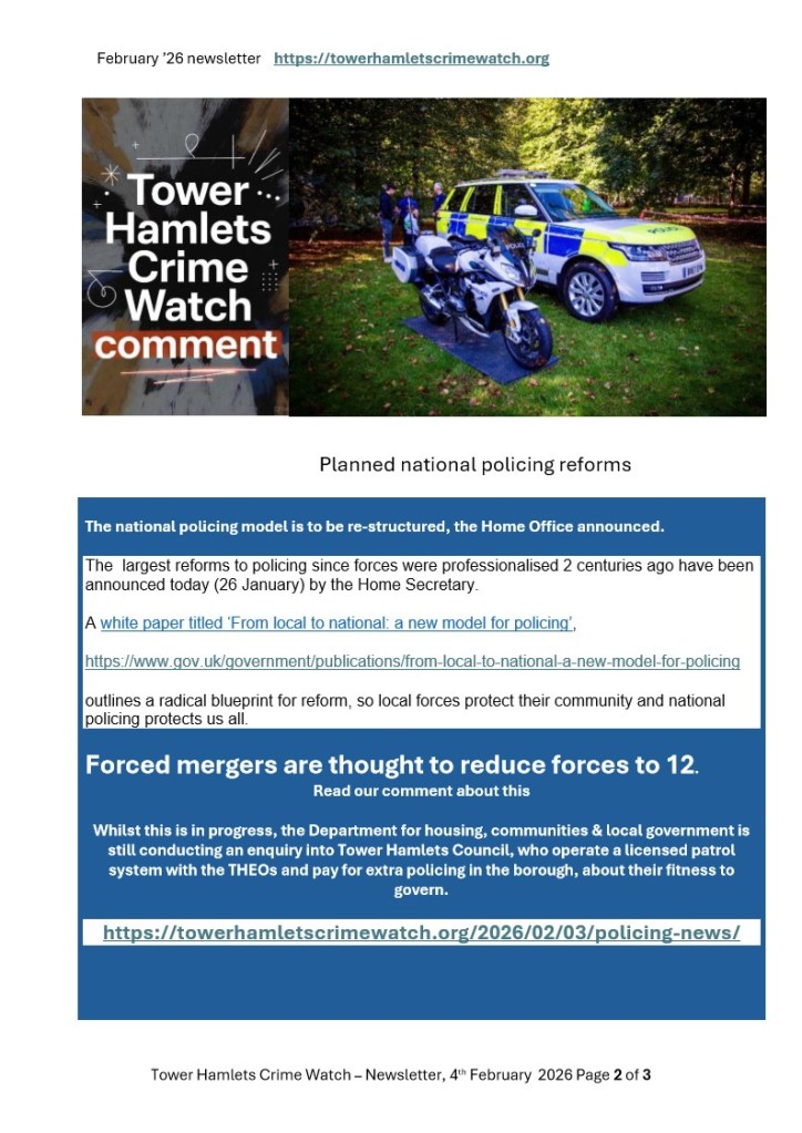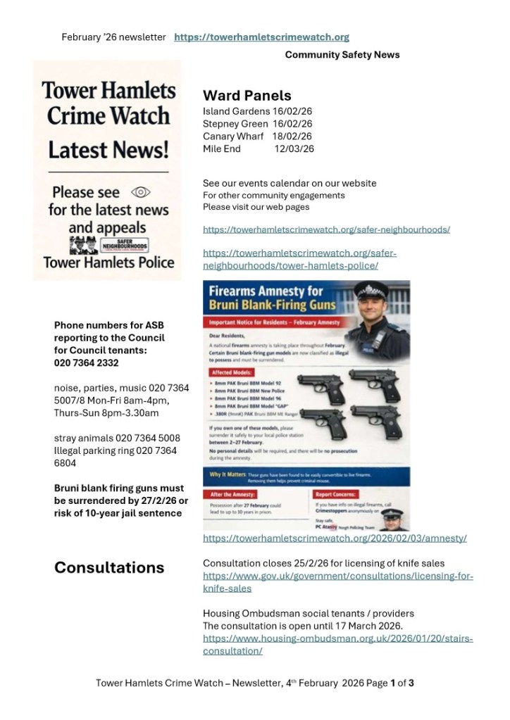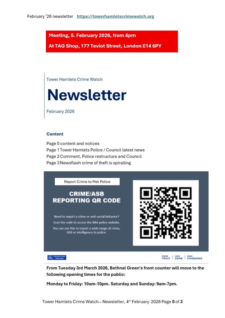 Tower Hamlets Crime Watch February 2026 Newsletter